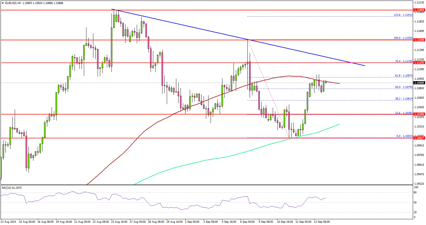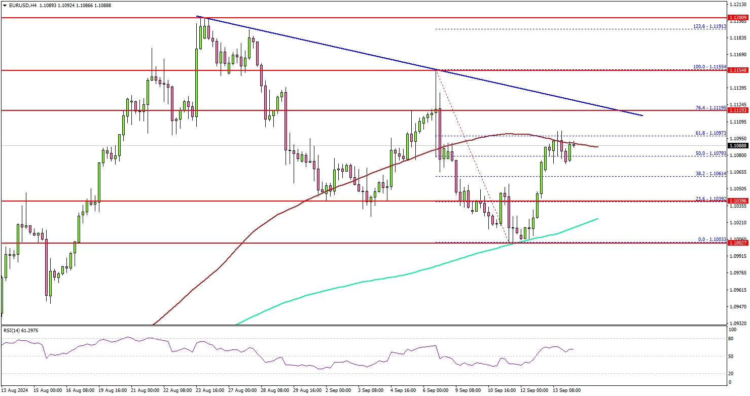 The Euro found support near the 1.1000 zone against the US Dollar. EUR/USD started another increase above the 1.1050 resistance zone.