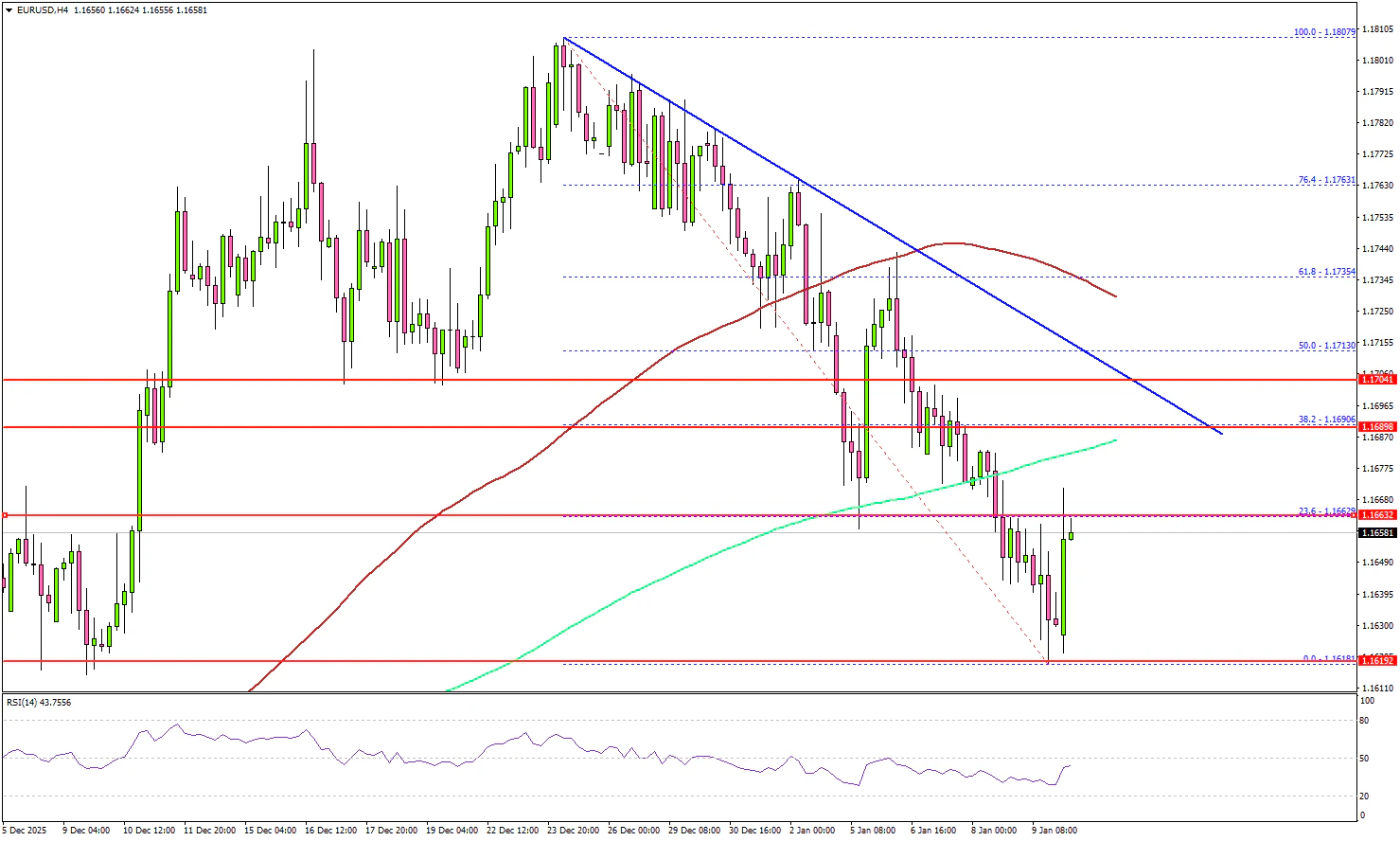 Looking at the 4-hour chart, the pair settled below 1.1700, the 100 simple moving average (red, 4-hour), and the 200 simple moving average (green, 4-hour). The pair even tested 1.1620. A low was formed at 1.1618, and the pair is now recovering some losses.