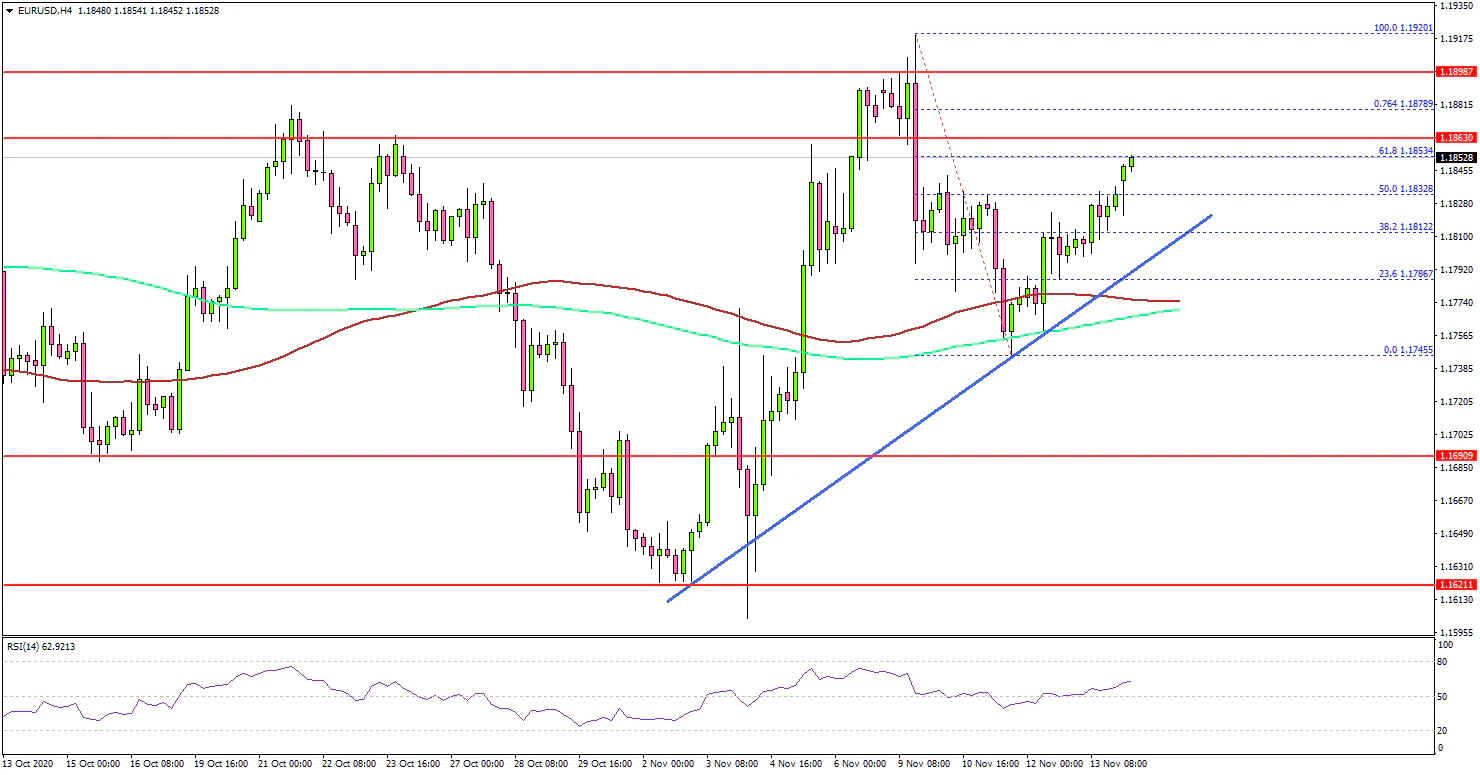 A swing low was formed near 1.1745 before the pair started a fresh upward move. It climbed back above the 1.1800 level, and traded above the 38.2% Fib retracement level of the downward move from the 1.1920 high to 1.1745 low.