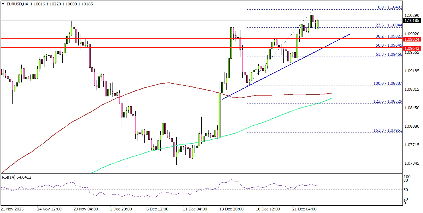 Looking at the 4-hour chart, the pair settled above the 1.0950 level, the 100 simple moving average (red, 4 hours), and the 200 simple moving average (green, 4 hours).