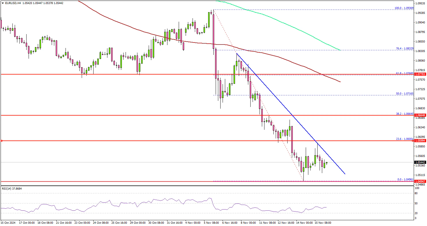 The first key resistance is near the 1.0600 level or the 23.6% Fib retracement level of the downward move from the 1.0939 swing high to the 1.0496 low.