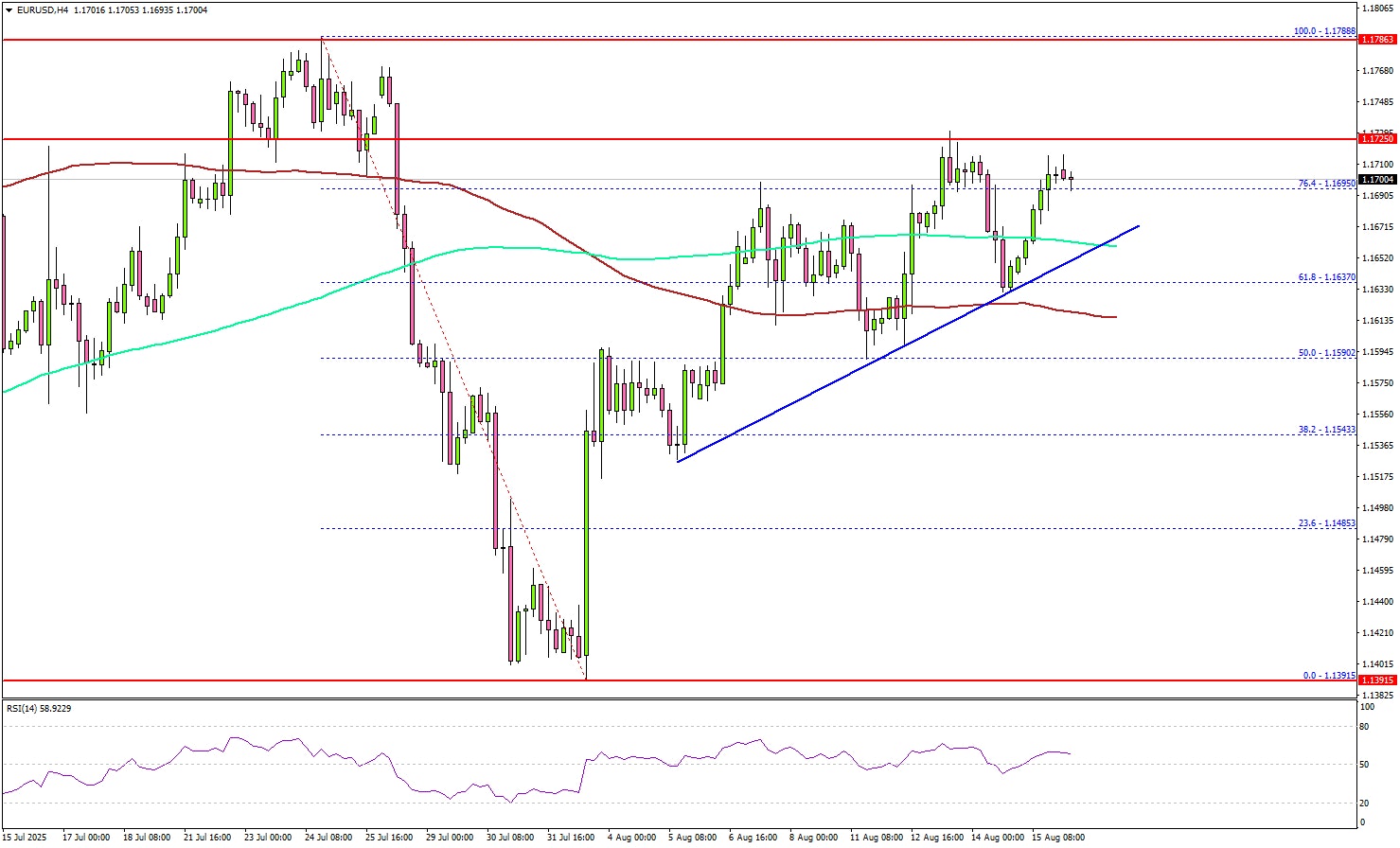 On the upside, the pair now faces resistance near the 1.1720 level. The next key resistance sits near 1.1750. A close above 1.1750 could set the pace for another increase.
