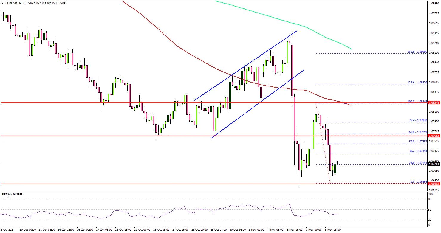 On the downside, immediate support sits near the 1.0685 level. The next key support sits near the 1.0650 level. Any more losses could send the pair toward the 1.0620 level.