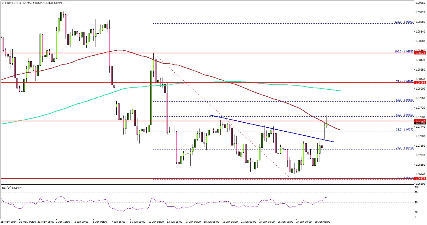 The Euro started a decent recovery wave from the 1.0665 zone against the US Dollar. EUR/USD cleared the 1.0710 resistance to move into a short-term positive zone.