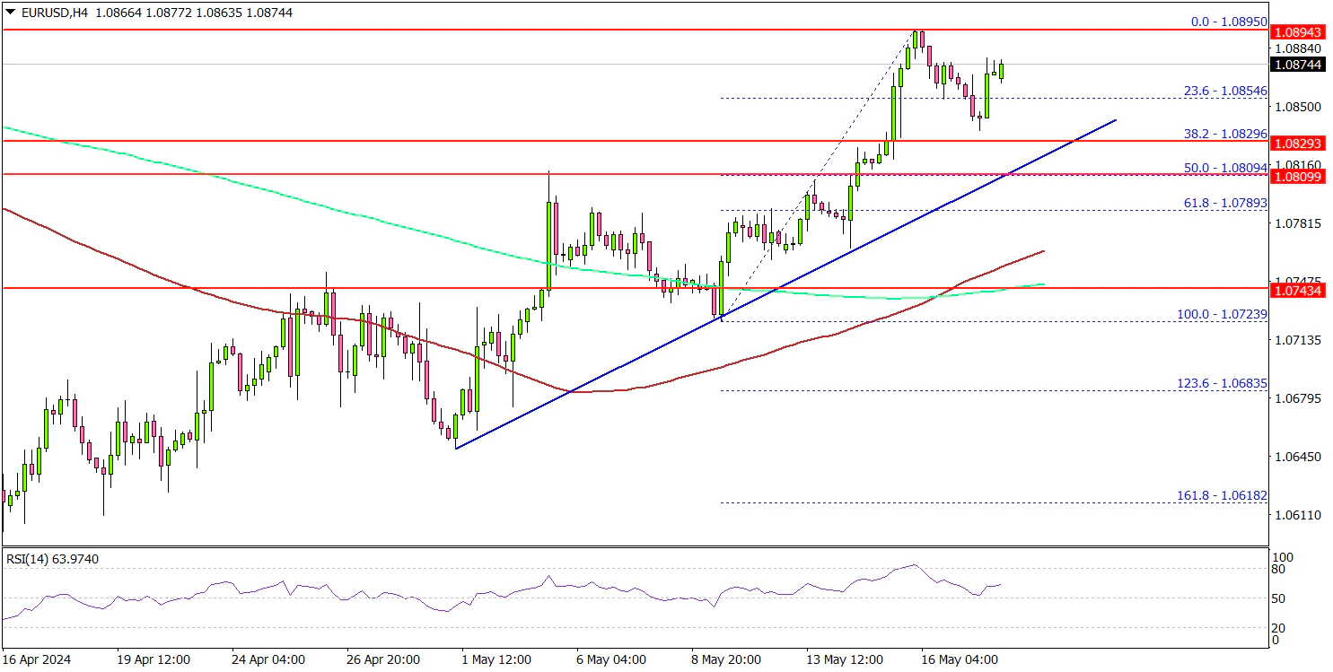 - EUR/USD started a fresh increase above the 1.0820 resistance.
