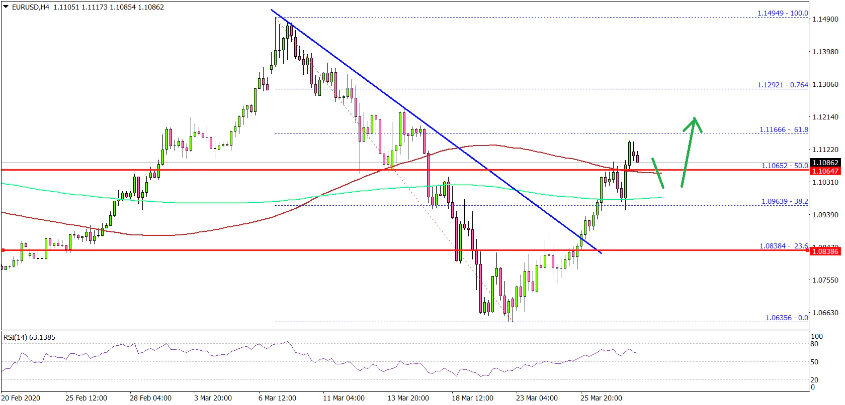 It opened the doors for more gains above the 50% Fib retracement level of the main decline from the 1.1494 high to 1.0635 low.