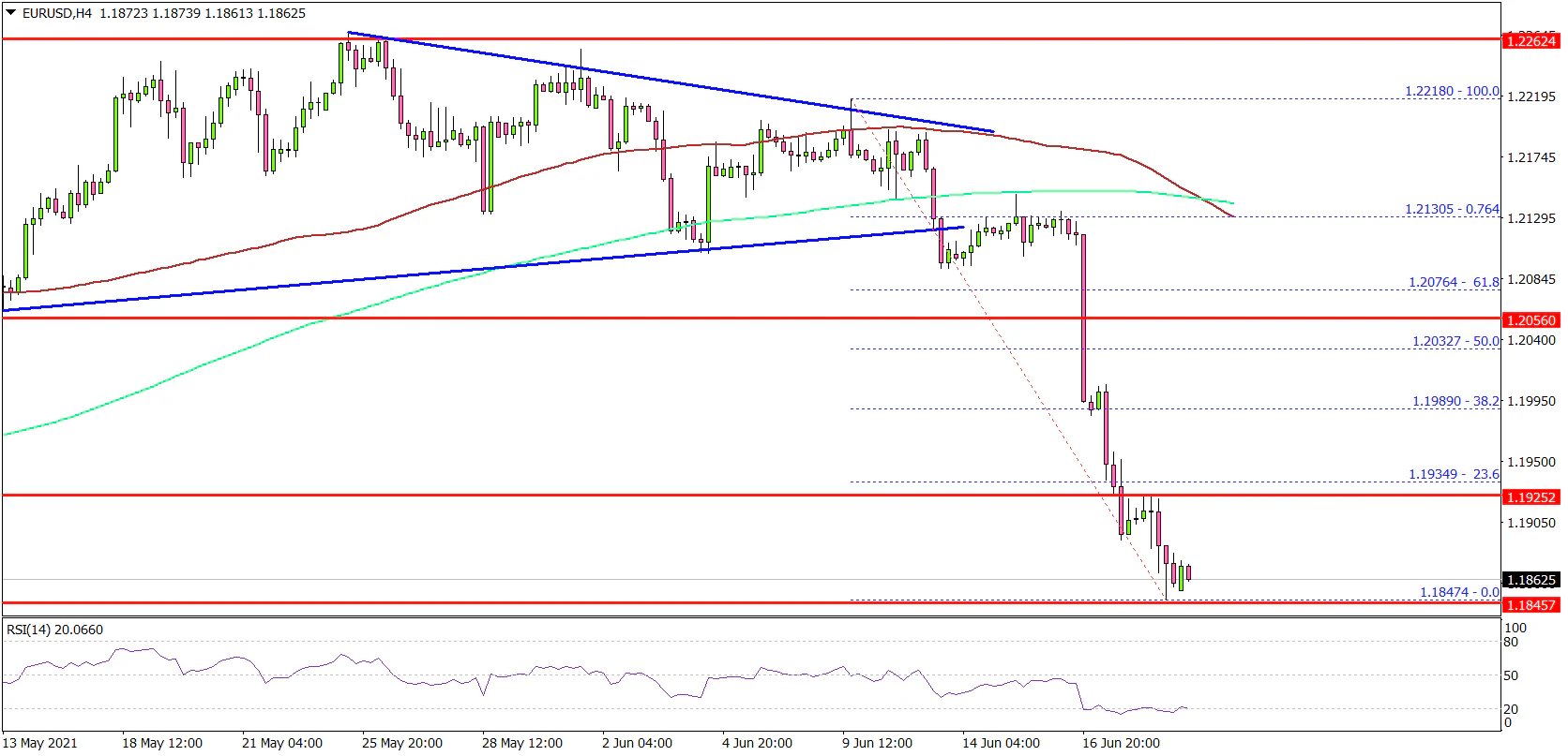 - EUR/USD started a major decline after it broke the 1.2000 support.