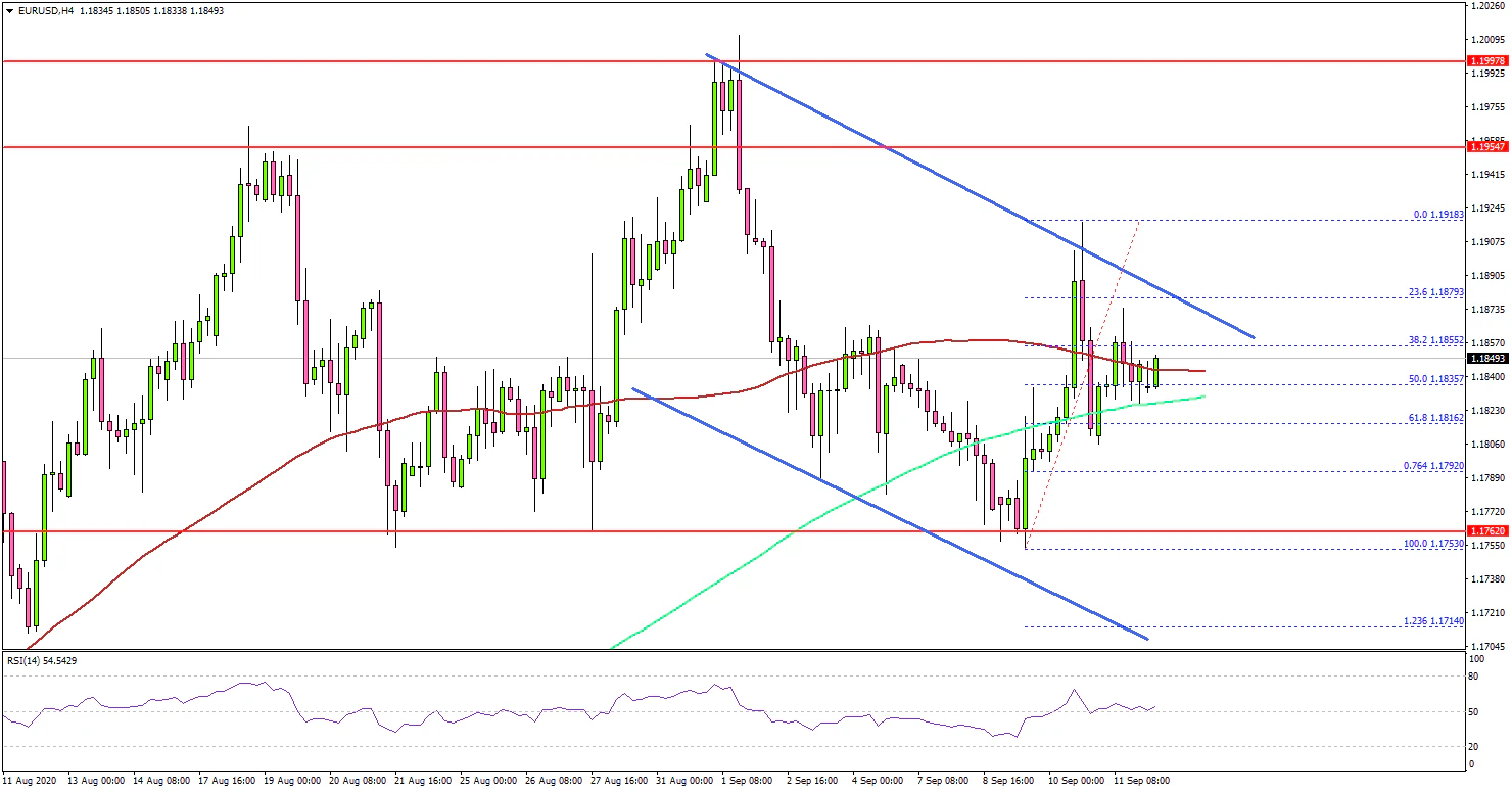 This past week, the Euro retested the 1.1750 support level against the US Dollar. EUR/USD started a fresh increase above 1.1850, but it seems to be facing hurdles near 1.1900 and 1.1920.