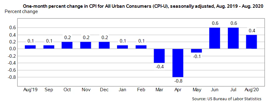 Fundamentally, the US Consumer Price Index report for August 2020 was released this past Friday by the US Bureau of Labor Statistics. The market was looking for a 1.2% rise in the CPI, compared with the same month a year ago.