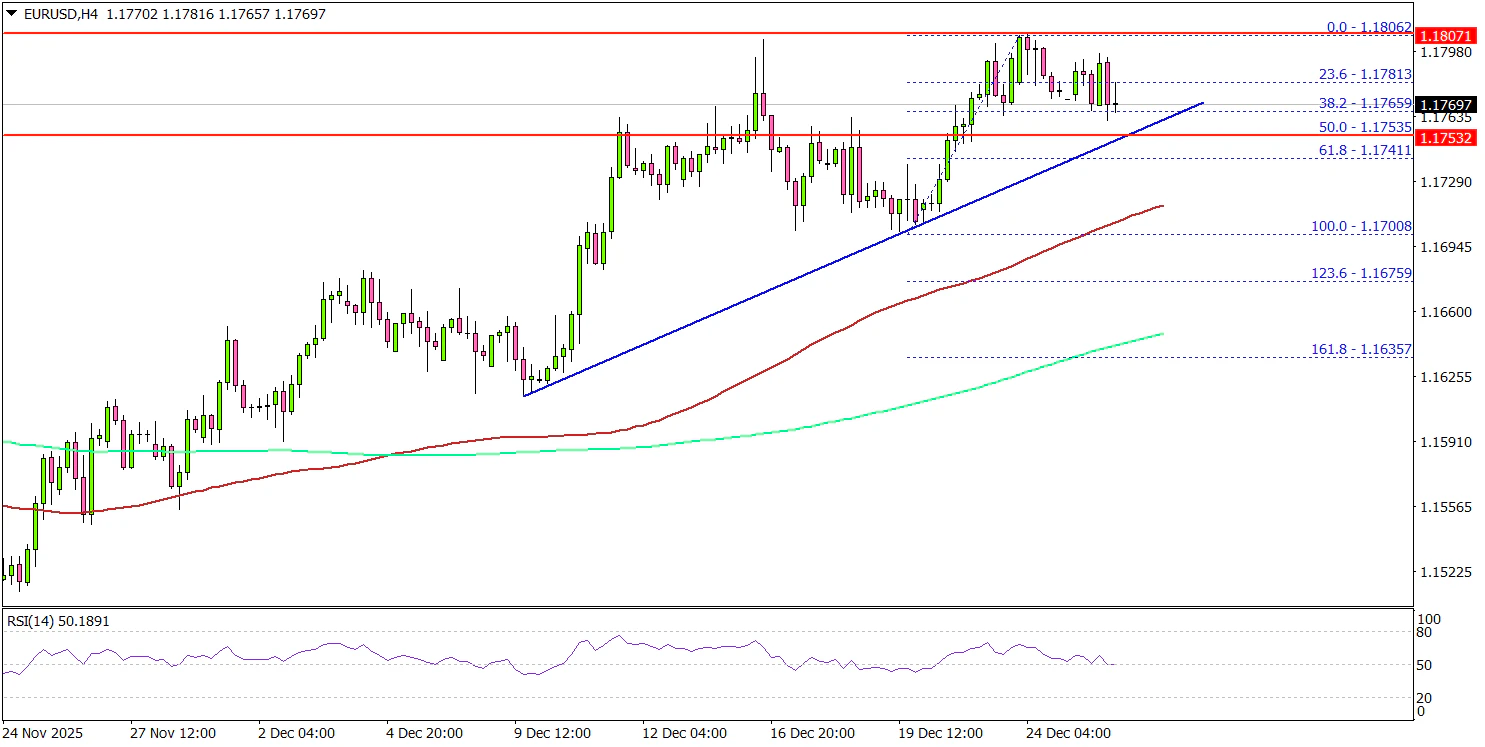Immediate resistance sits near 1.1800. The first key hurdle is seen near 1.1820. A close above 1.1820 could open the doors for a move toward 1.1850. Any more gains could set the pace for a steady increase toward 1.1920.