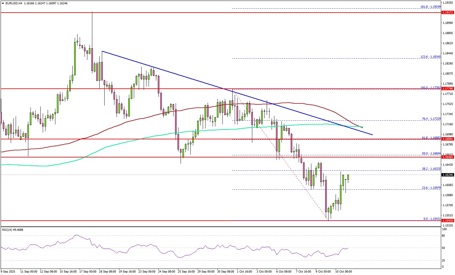 The pair climbed above the 1.1620 level and the 23.6% Fib retracement level of the recent decline from the 1.1728 swing high to the 1.1542 low. On the upside, the pair faces resistance near the 1.1660 level.