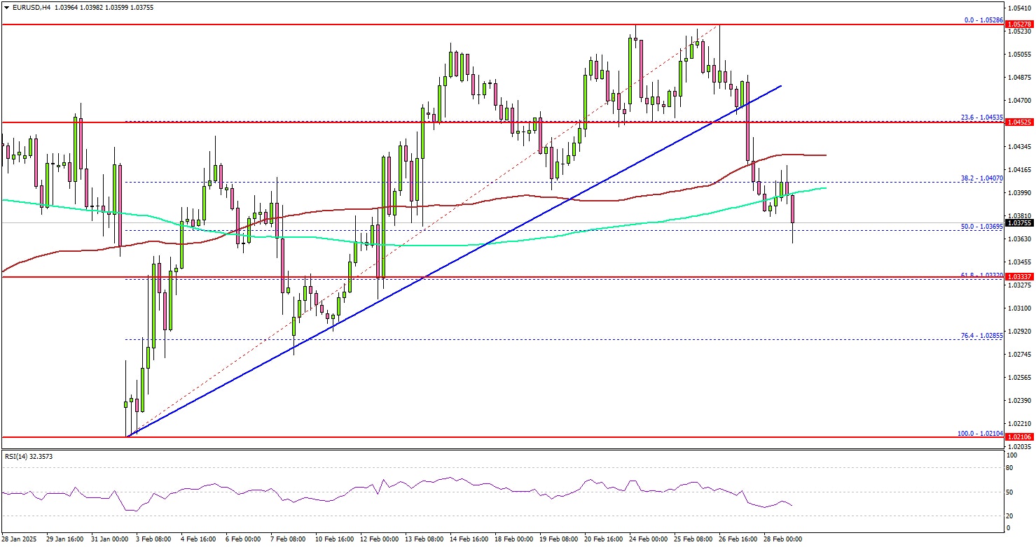 On the downside, immediate support sits near the 1.0365 level. The next key support sits near the 1.0350 level. Any more losses could send the pair toward the 1.0320 level.
