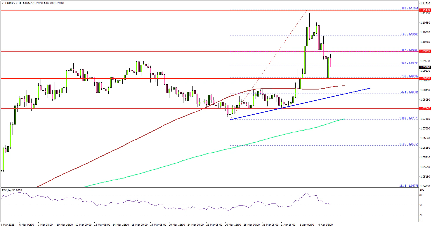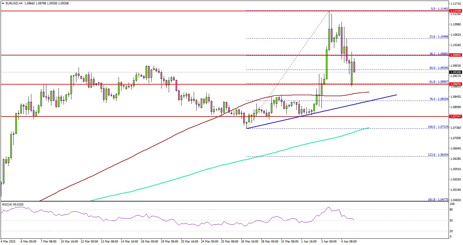 There is also a connecting bullish trend line forming with support at 1.0840 on the same chart. If there is a fresh increase, the pair could face resistance near the 1.0980 level.