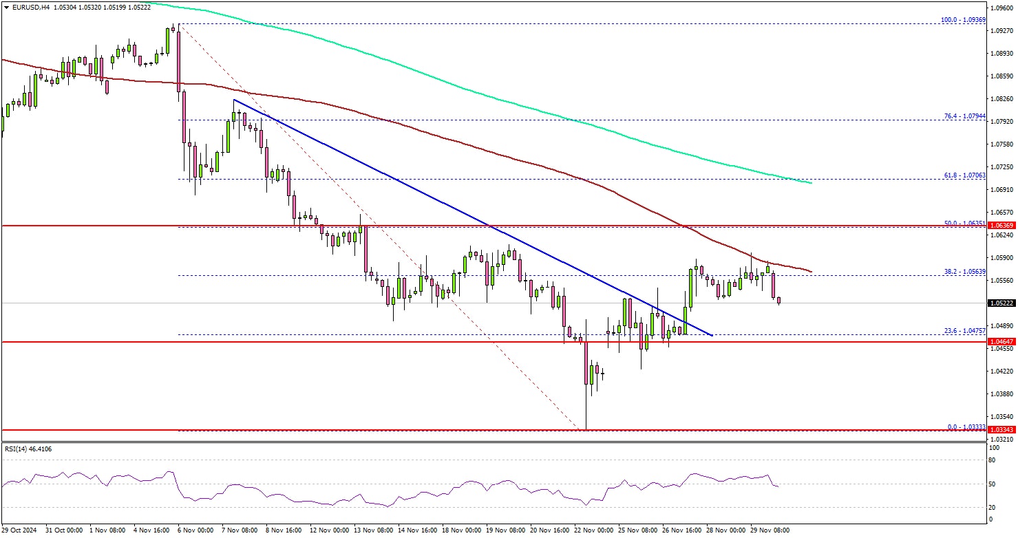 The Euro formed a base above 1.0350 and started a recovery wave against the US Dollar. EUR/USD cleared the 1.0450 and 1.0500 levels to move into a positive zone.