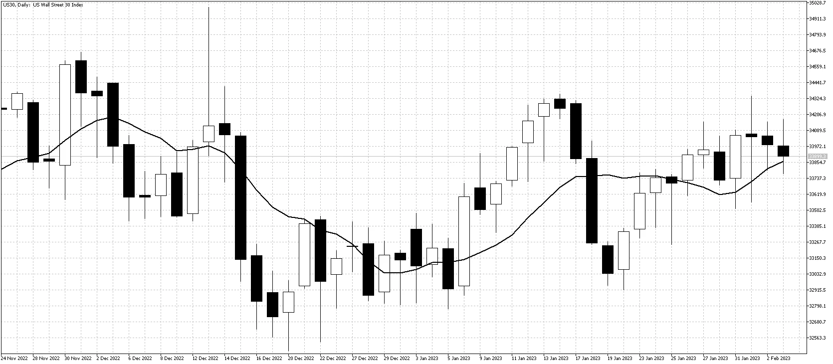 This week's focus will be speeches by two US Federal reserve members on Tuesday and Wednesday. While the Federal Reserve is less worried about inflation pressures, the market will be interested to see how strong US economic data impacts interest rate policy in 2023. The failure at the highs of 2023 confirms the Dow Jones remains range bound, so waiting for a fall to buy the Dow looks to be the best strategy in the week ahead.