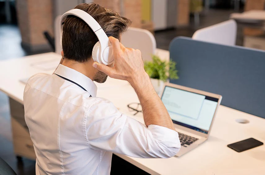 While using your headphones, you can listen to background tunes or music that will help you to relax and regain focus.
