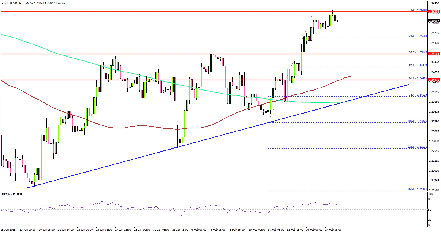 Looking at the 4-hour chart, the pair settled above the 1.2550 level, the 100 simple moving average (red, 4-hour), and the 200 simple moving average (green, 4-hour). The pair even tested the 1.2630 zone before there was a minor pullback.
