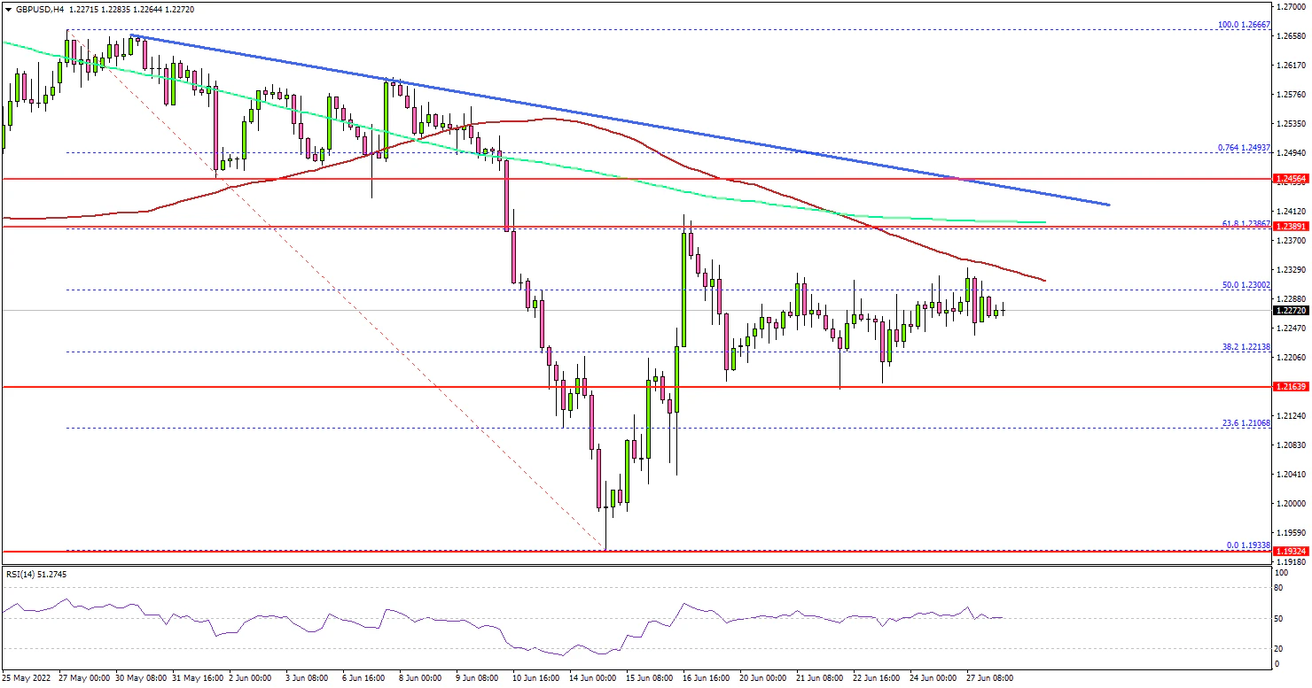 Looking at the 4-hours chart, the pair was able to climb above the 1.2250 resistance zone. There was a move above the 50% Fib retracement level of the key decline from the 1.2666 swing high to 1.1933 low.