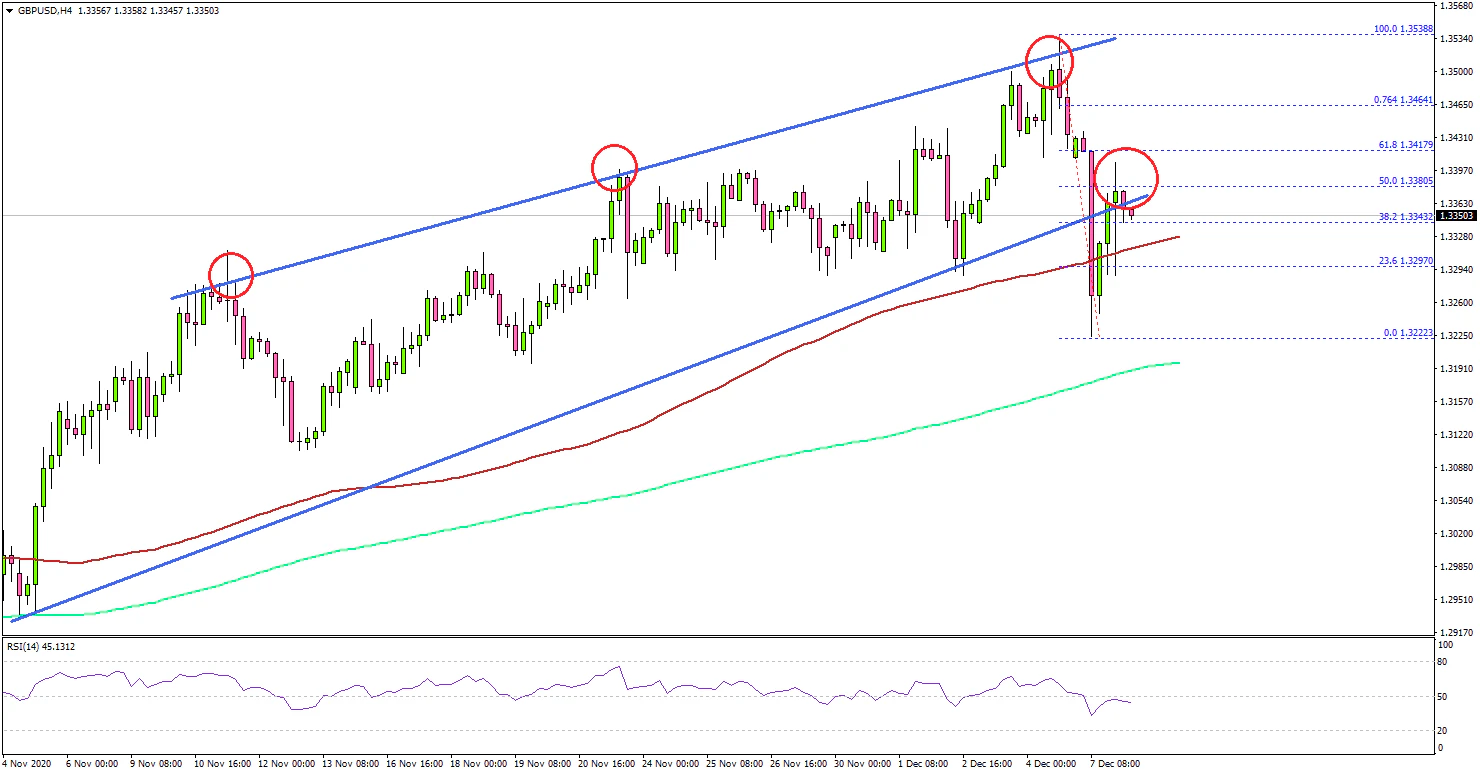 In the past few days, there was a steady rise in the British Pound above 1.3320 resistance against the US Dollar. GBP/USD even broke the key 1.3400 resistance area and climbed above 1.3500 before facing hurdles.