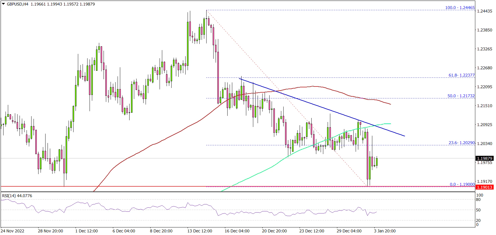 The pair traded as low as 1.1900 and recently started a minor upside correction. The pair climbed above the 1.2000 level, but there are many hurdles on the upside.