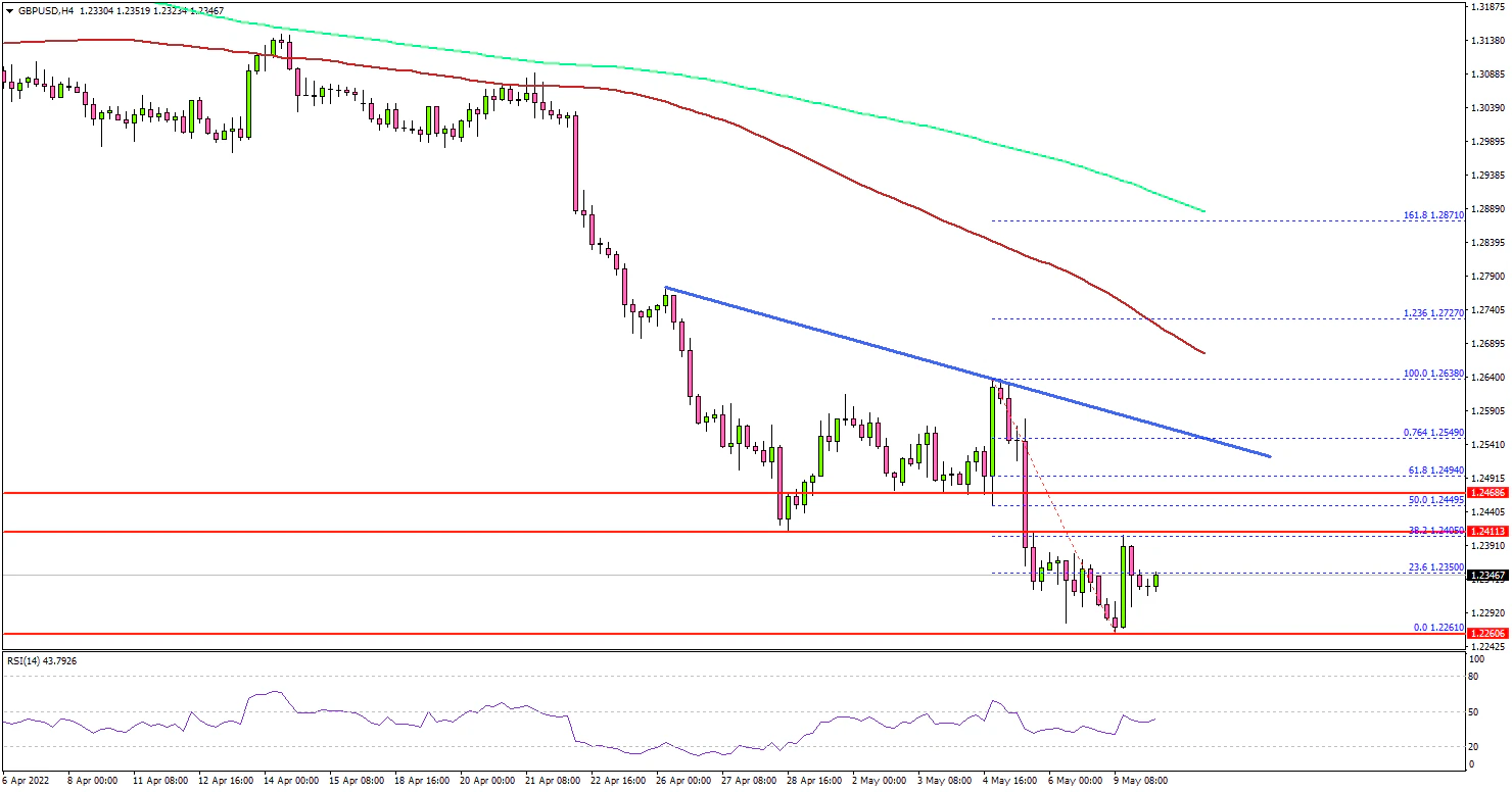 Finally, there was a break below the 1.2300 level and the pair traded as low as 1.2261. Recently, there was a minor upside correction above the 1.2350 resistance level. There a move above the 23.6% Fib retracement level of the recent decline from the 1.2638 swing high to 1.2261 low.