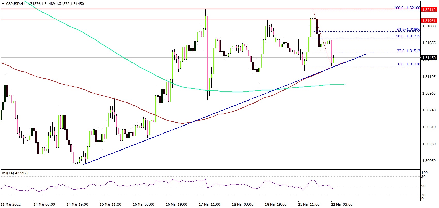 - GBP/USD started a fresh increase above the 1.3120 resistance.