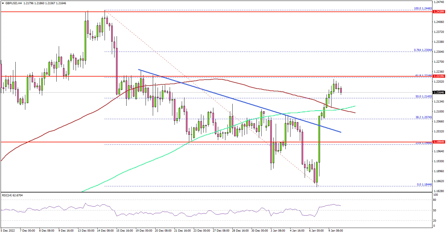 A clear move above the 1.2215 resistance might start a steady increase. In the stated case, GBP/USD could even surpass the 1.2250 level. In the stated case, the pair could rise towards the 1.2400 level.