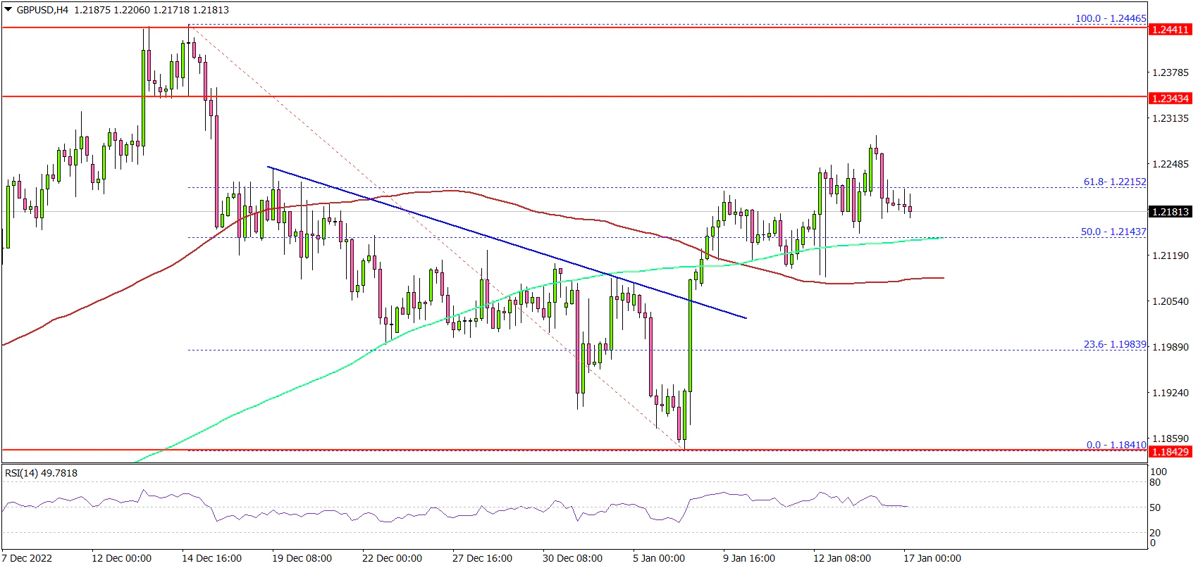 - GBP/USD started a fresh increase above the 1.2200 resistance.