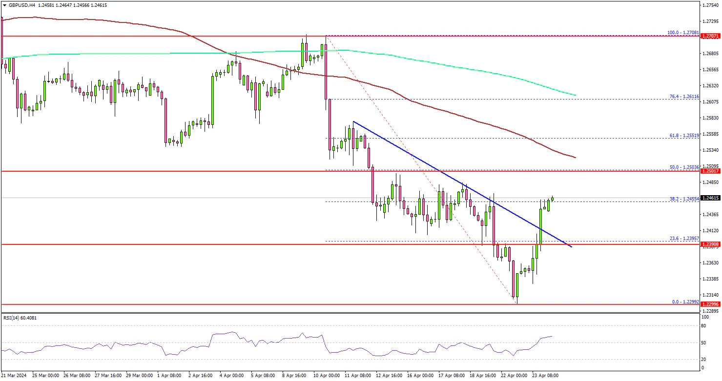 The British Pound extended losses and traded below the 1.2450 support against the US Dollar. GBP/USD tested the 1.2300 zone and recently started a recovery wave.
