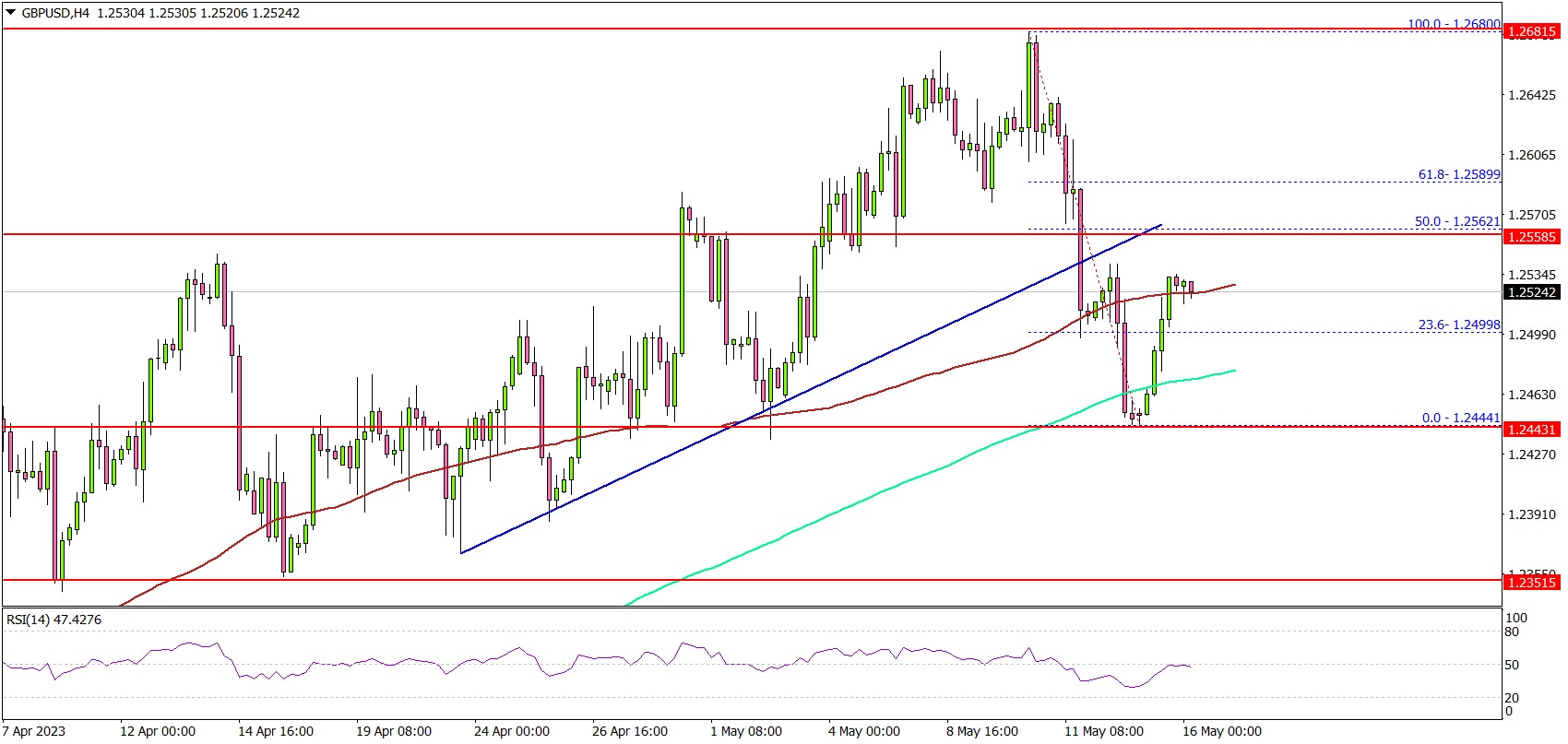 In the stated case, the pair could rise toward the 1.2620 resistance. The next key resistance is near 1.2680. On the downside, the pair might find bids near 1.2460.
