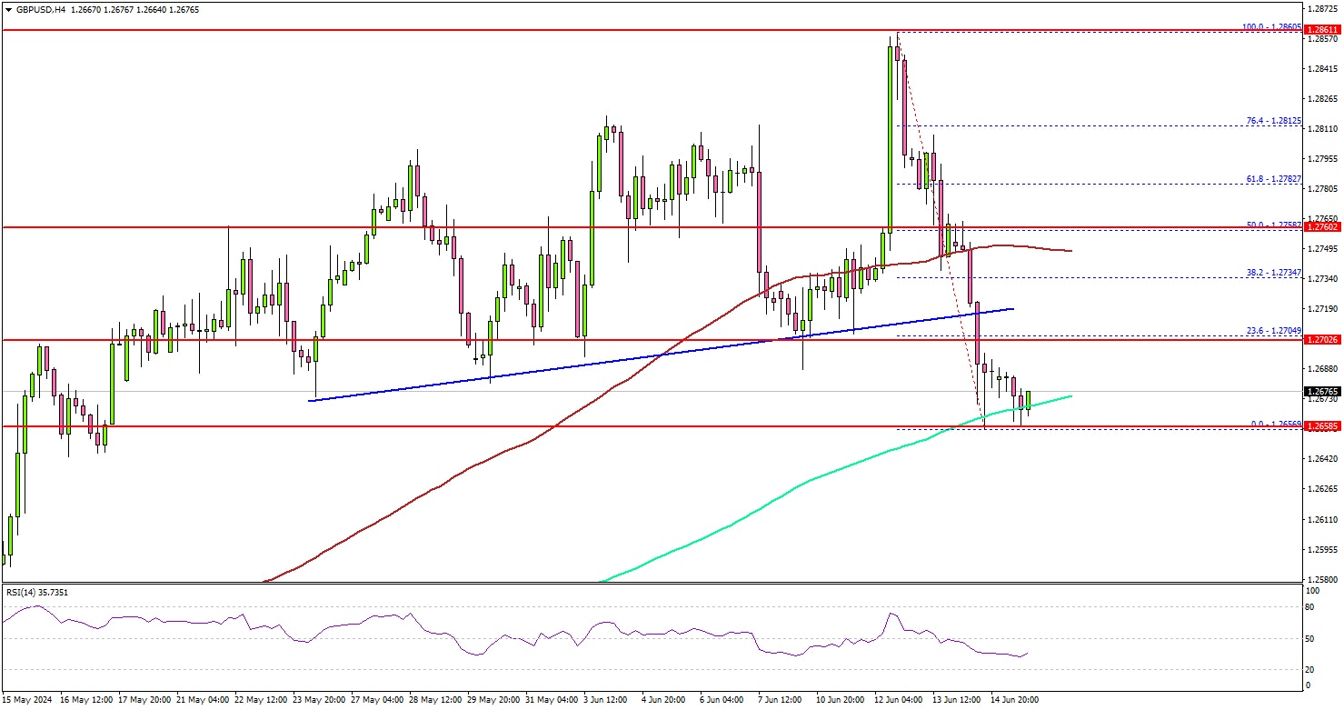 A low was formed at 1.2655 and the pair is now consolidating losses. If there is a fresh increase, the pair might face resistance near the 23.6% Fib retracement level of the downward move from the 1.2860 swing high to the 1.2655 low.
