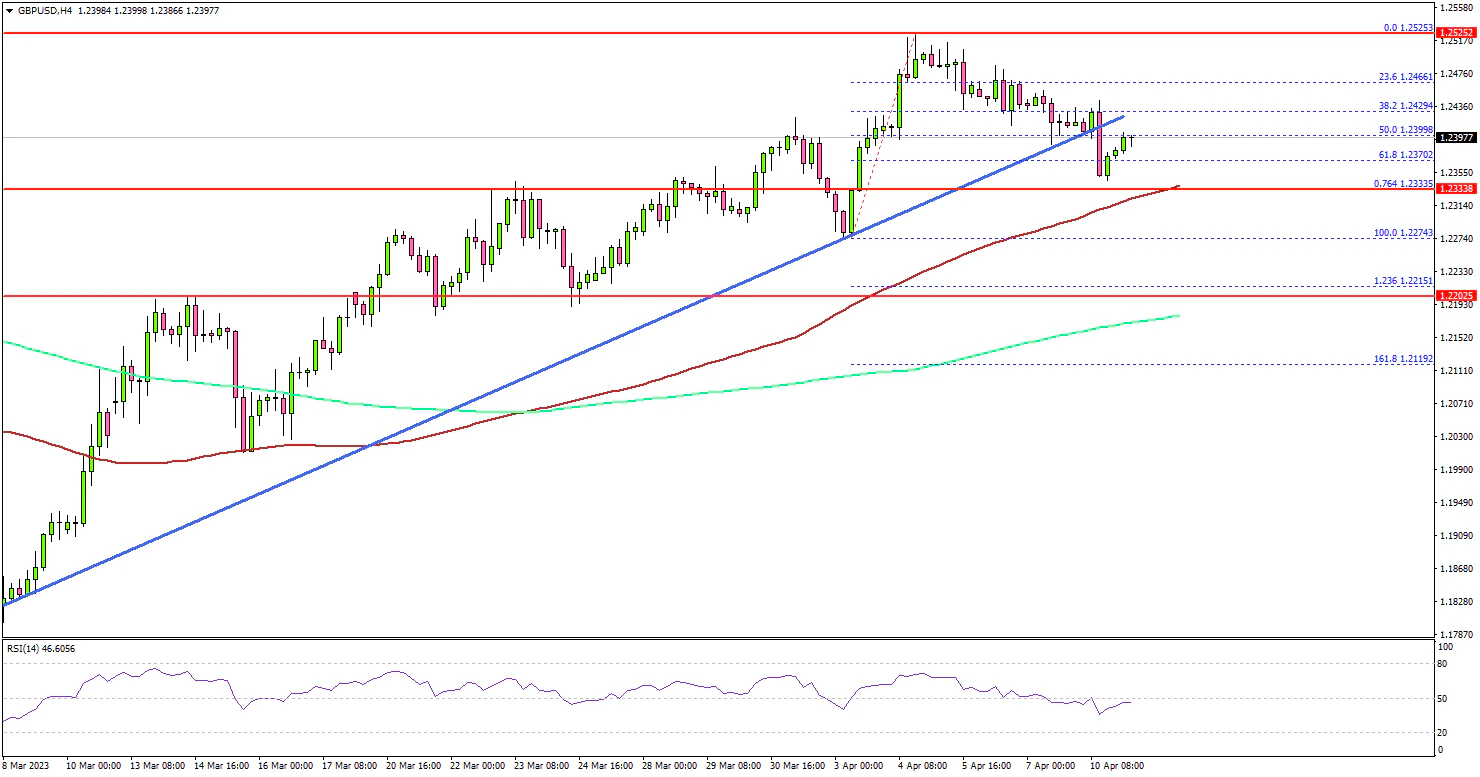 On the upside, the pair is now facing resistance near the 1.2400 level. The next key resistance is near the 1.2450 zone. A clear move above the 1.2450 resistance might send the pair toward the 1.2525 zone. Any more gains might send the pair toward 1.2620.