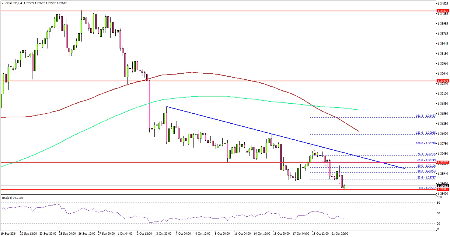 The British Pound started a fresh decline below the 1.3120 level against the US Dollar. GBP/USD traded below 1.3050 to move into a bearish zone.