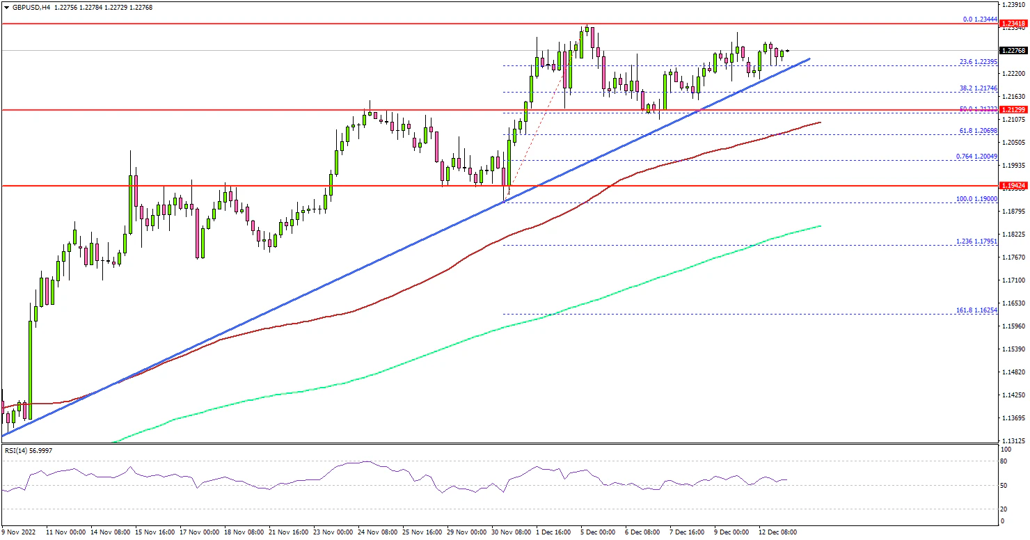 This past week, the pair attempted an upside break above 1.2350 but failed. As a result, there was a downside correction to 1.2100. It remained well supported and started a fresh increase above 1.2200.