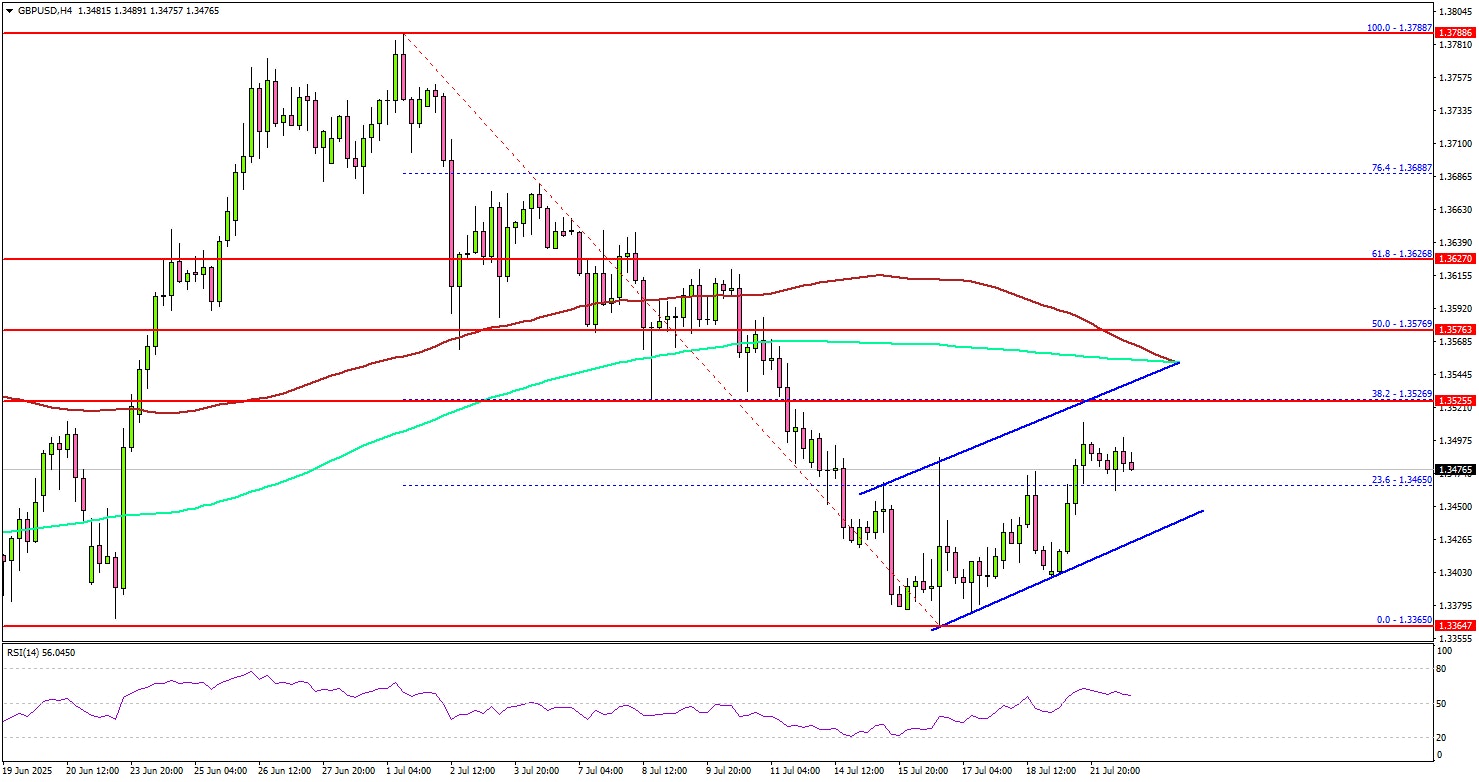 - It now faces hurdles near the 1.3520 and 1.3550 levels on the 4-hour chart.