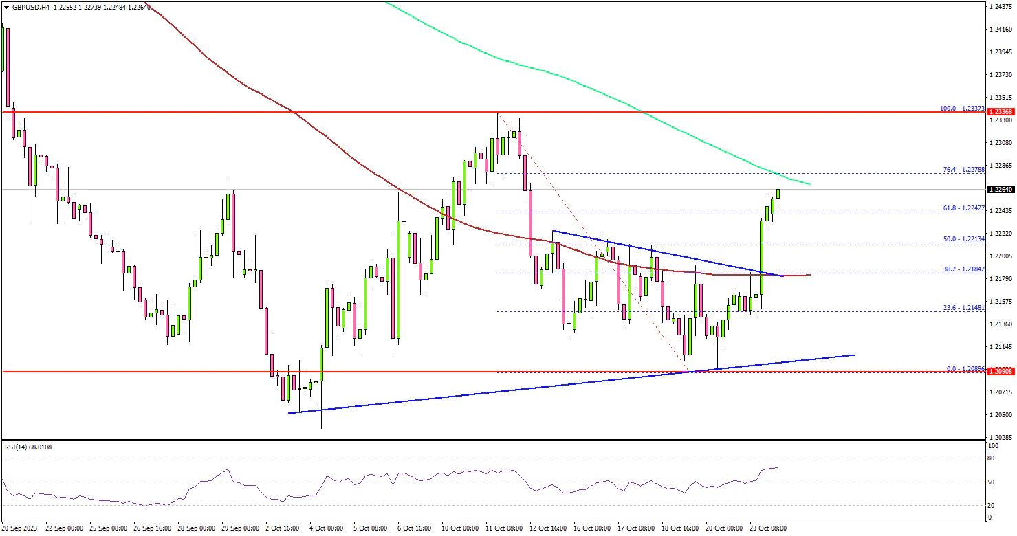 - GBP/USD is attempting a recovery wave above the 1.2200 resistance.