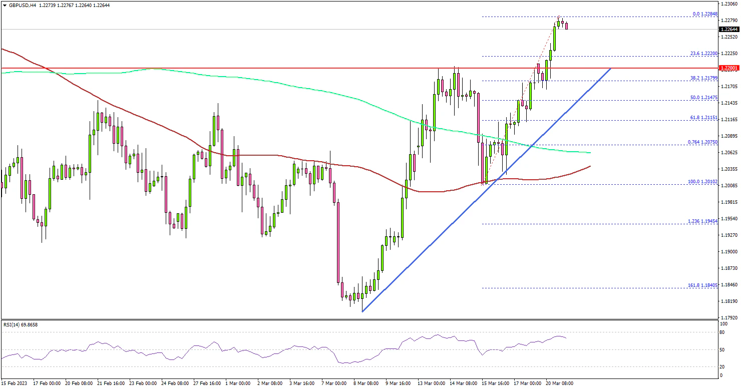 The upward move was such that the pair even cleared the 1.2200 resistance zone. On the upside, an immediate resistance is near the 1.2280 level. The next major resistance is near the 1.2320.