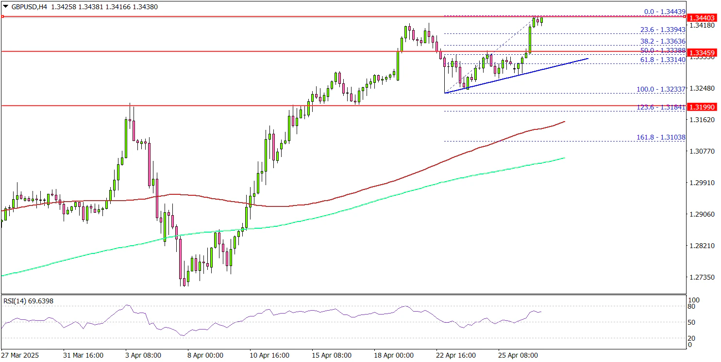 The pair is now consolidating near 1.3440. It seems like the bulls could soon aim for a move above the 1.3450 zone. If there is a fresh increase, the pair could face resistance near the 1.3500 level.