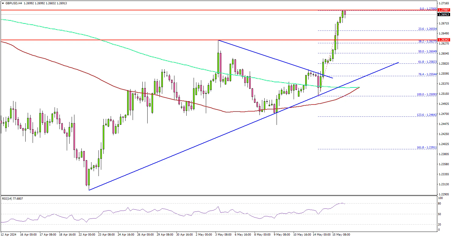 A high was formed at 1.2700 and the pair is now consolidating gains. The first major resistance is near 1.2720. A clear move above the 1.2720 resistance might send it toward the 1.2750 level. Any more gains might call for a move toward the 1.2880 level in the near term.