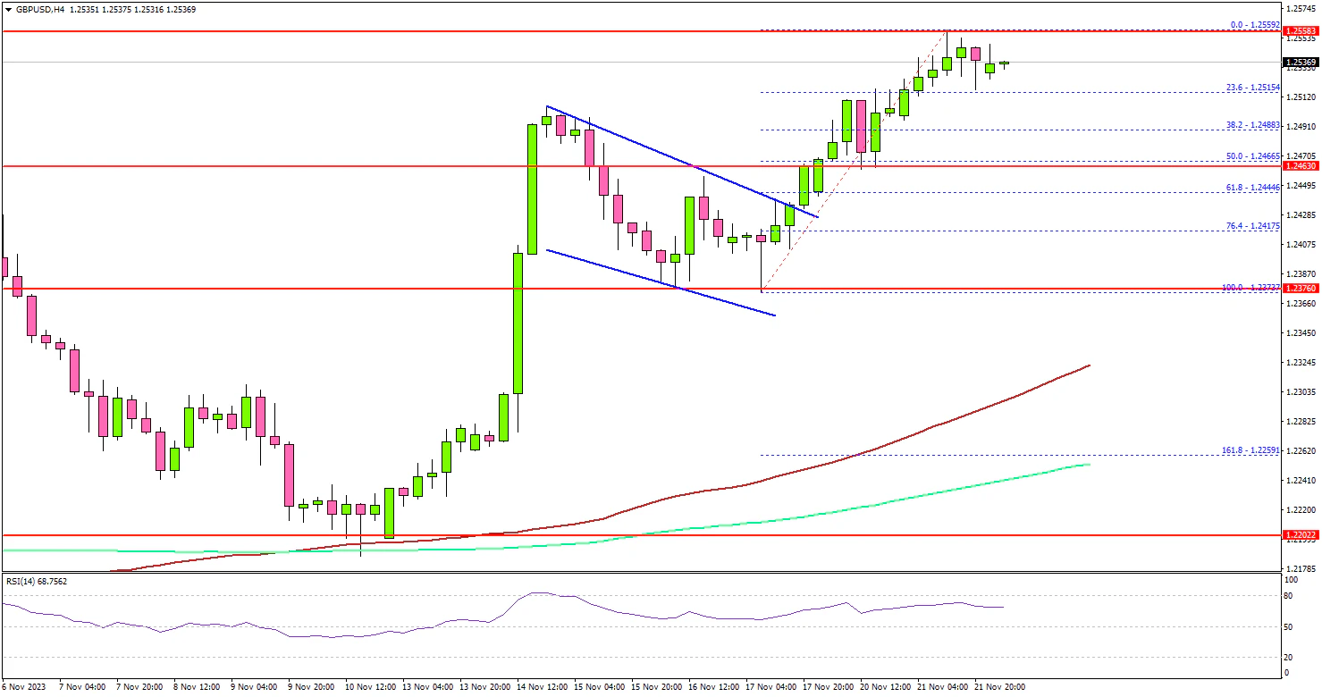 Finally, there was a move above the 1.2500 resistance. The pair tested the 1.2550 resistance and started a consolidation. On the upside, the pair is facing resistance near the 1.2565 level.