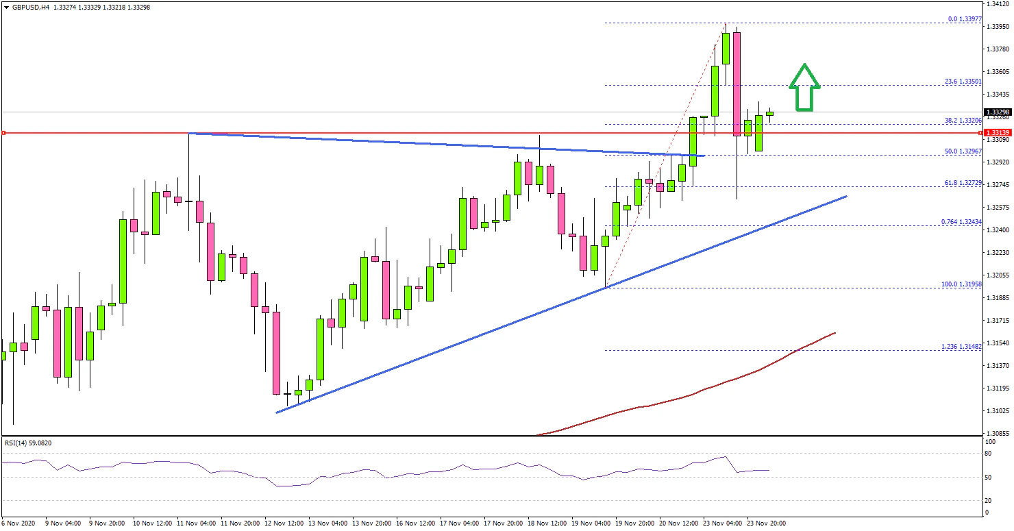 After forming a support base near 1.3200, the British Pound started a strong increase against the US Dollar. GBP/USD broke a major hurdle near 1.3300 to move further into a positive zone.