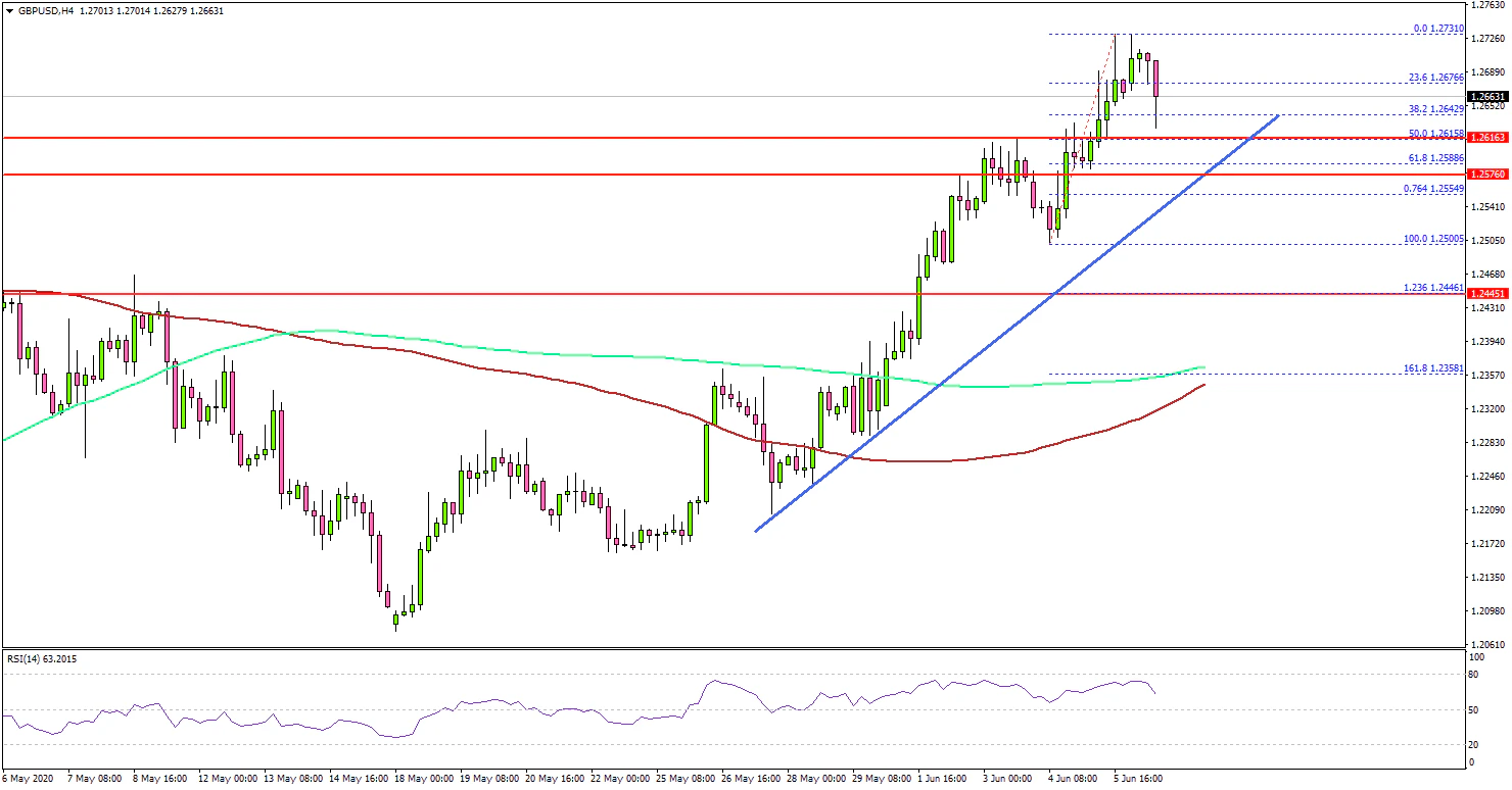 Recently, there was a minor downside correction below 1.2700. There was a break below the 23.6% Fib retracement level of the upward move from the 1.2500 low to 1.2731 high.