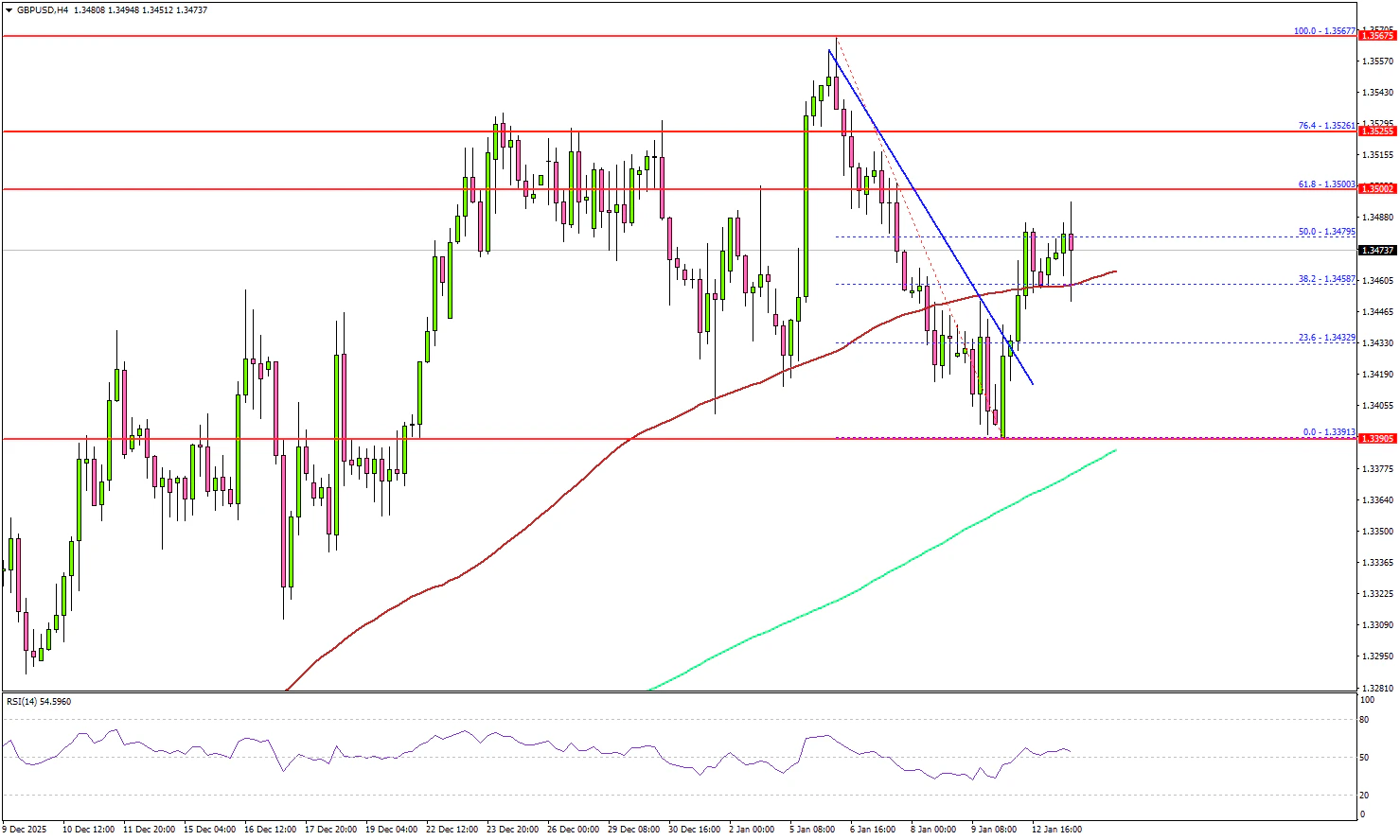 The pair remained well above the 200 simple moving average (green, 4-hour) and surpassed the 100 simple moving average (red, 4-hour). Immediate resistance sits near 1.3500 or the 61.8% Fib retracement.