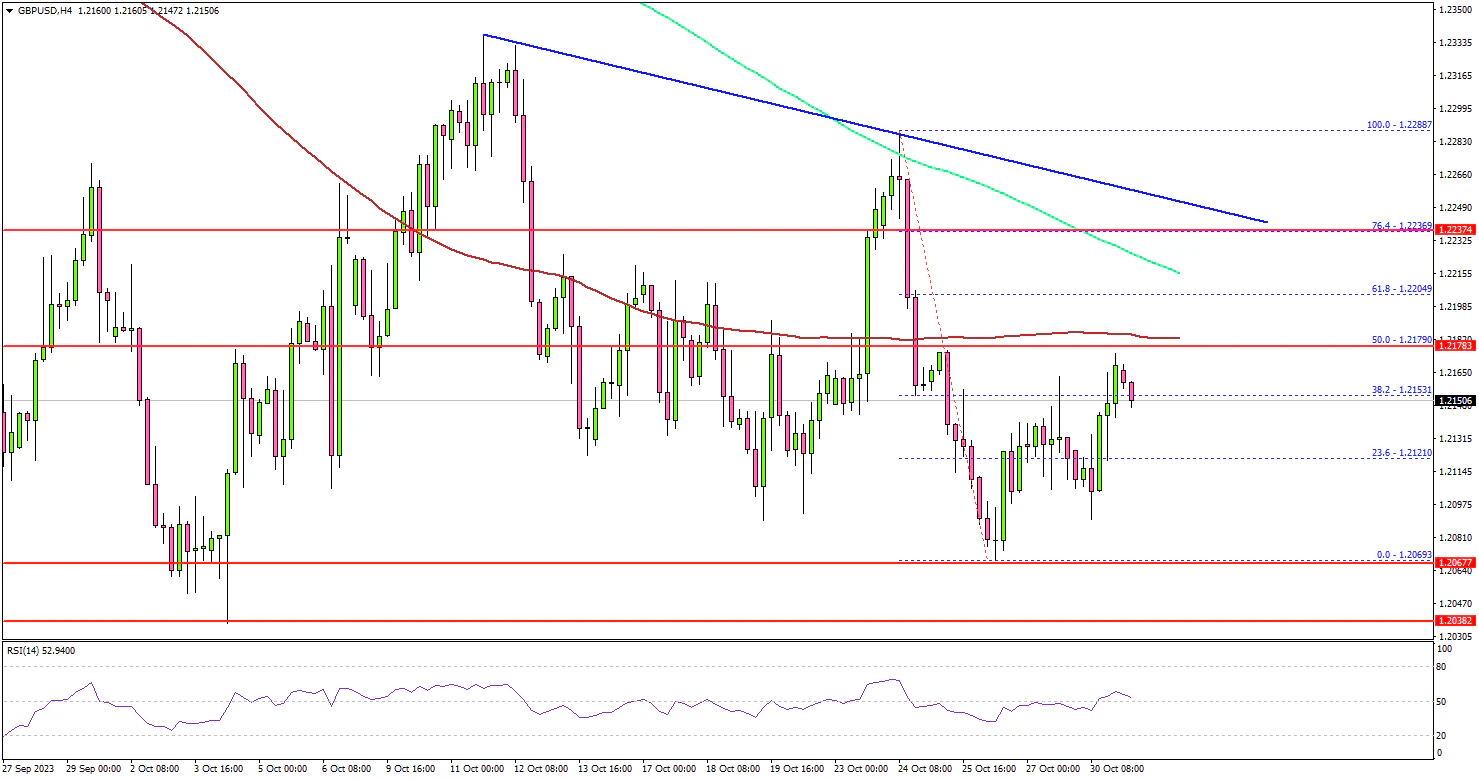 Finally, the bulls appeared near the 1.2070 zone. A low was formed near 1.2069 before the pair started a consolidation phase. It corrected above the 23.6% Fib retracement level of the downward move from the 1.2288 swing high to the 1.2069 low.