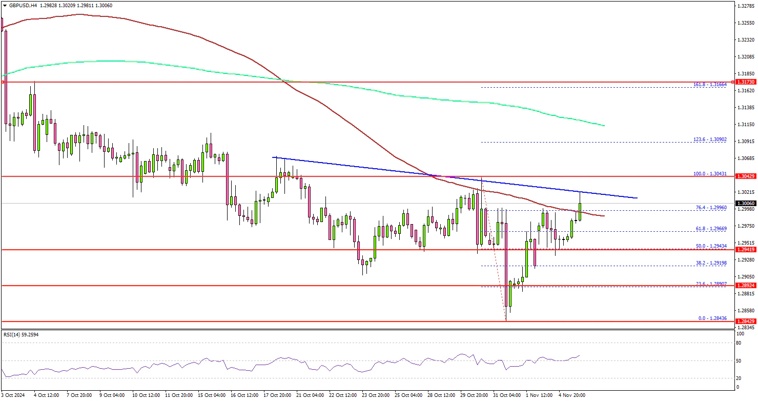 The British Pound started an upside correction from the 1.2840 zone against the US Dollar. GBP/USD climbed above the 1.2880 and 1.2950 resistance levels.