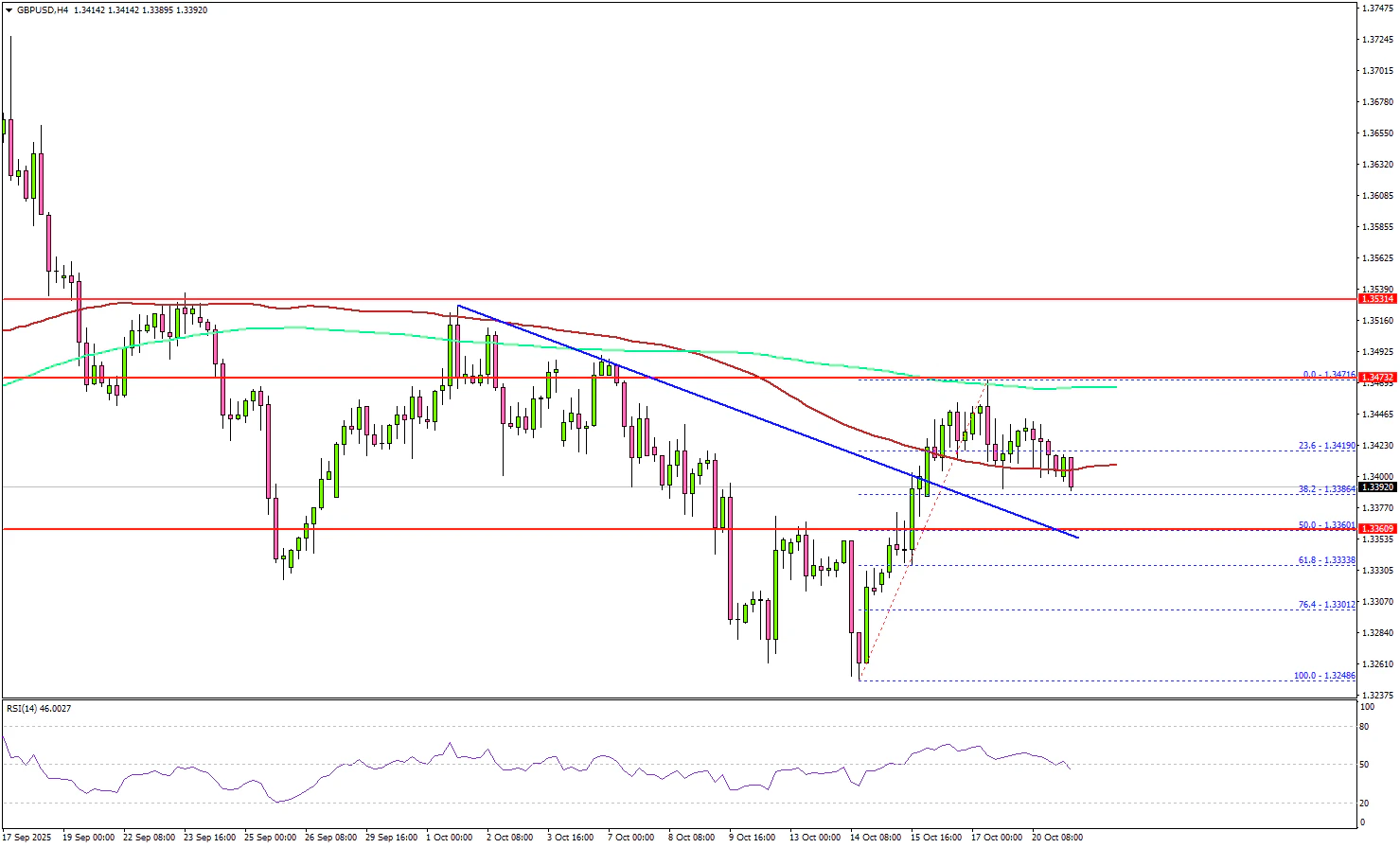 - GBP/USD started a recovery wave above the 1.3350 resistance.