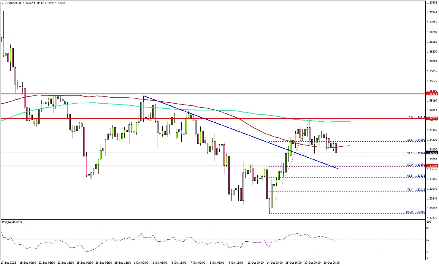 The British started a recovery wave from 1.3350 against the US Dollar. GBP/USD managed to surpass 1.3380 and 1.3400 before the bears appeared.