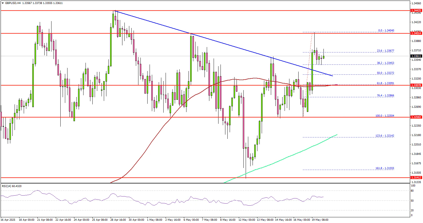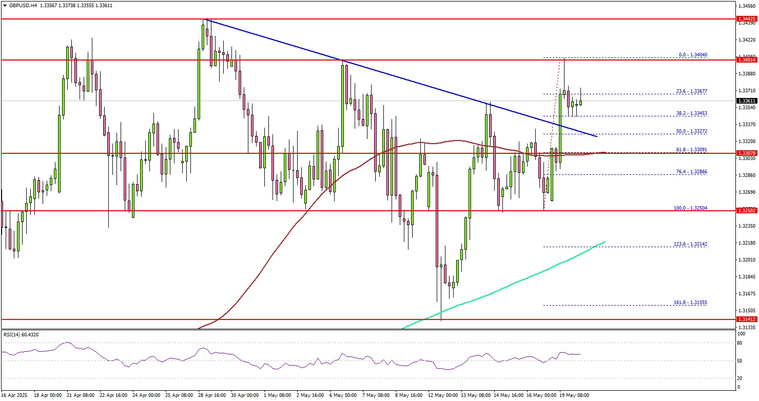 The British Pound remained support near 1.3250 against the US Dollar. GBP/USD formed a base and started a fresh increase above 1.3300.