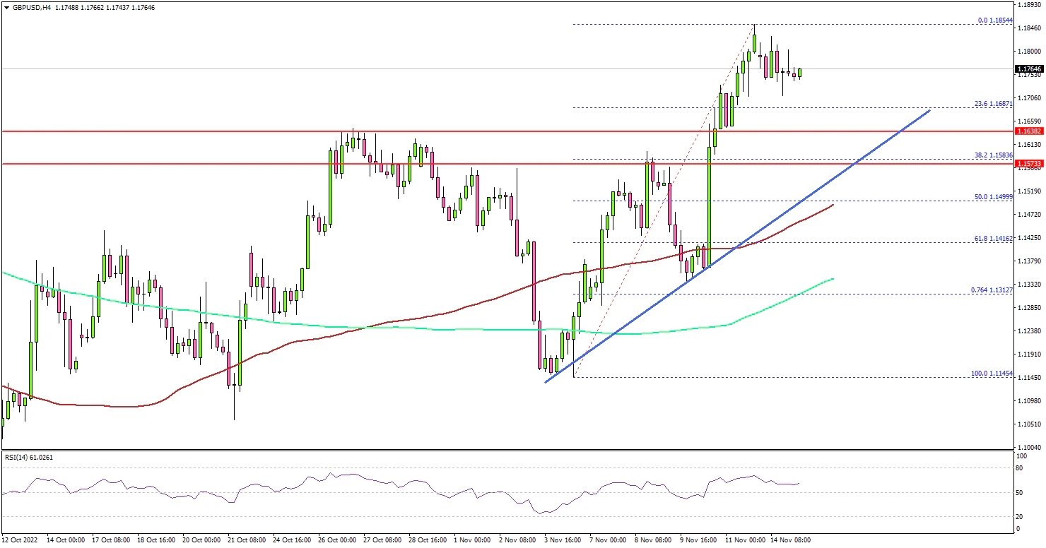 The upward move was such that the pair even climbed above the 1.1700 and 1.1750 levels. It traded as high as 1.1854 before there was a minor downside correction. An initial support is near the 1.1650 level.