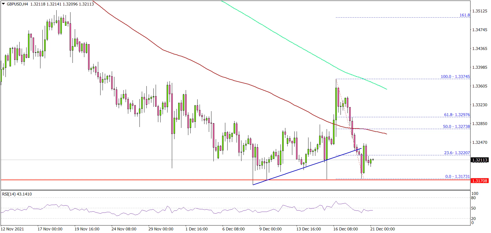 - It is trading below a major support at 1.3280 on the 4-hours chart.